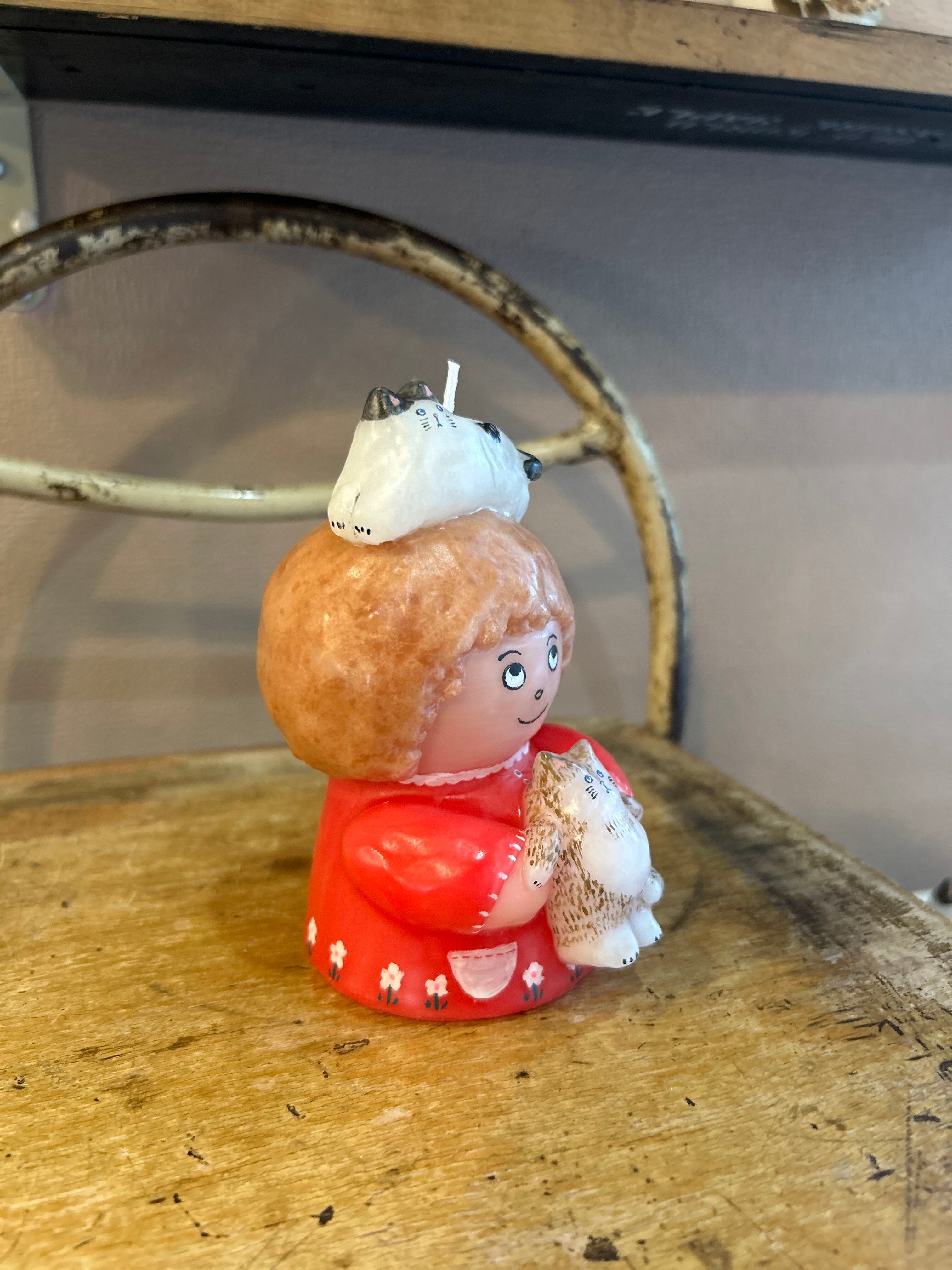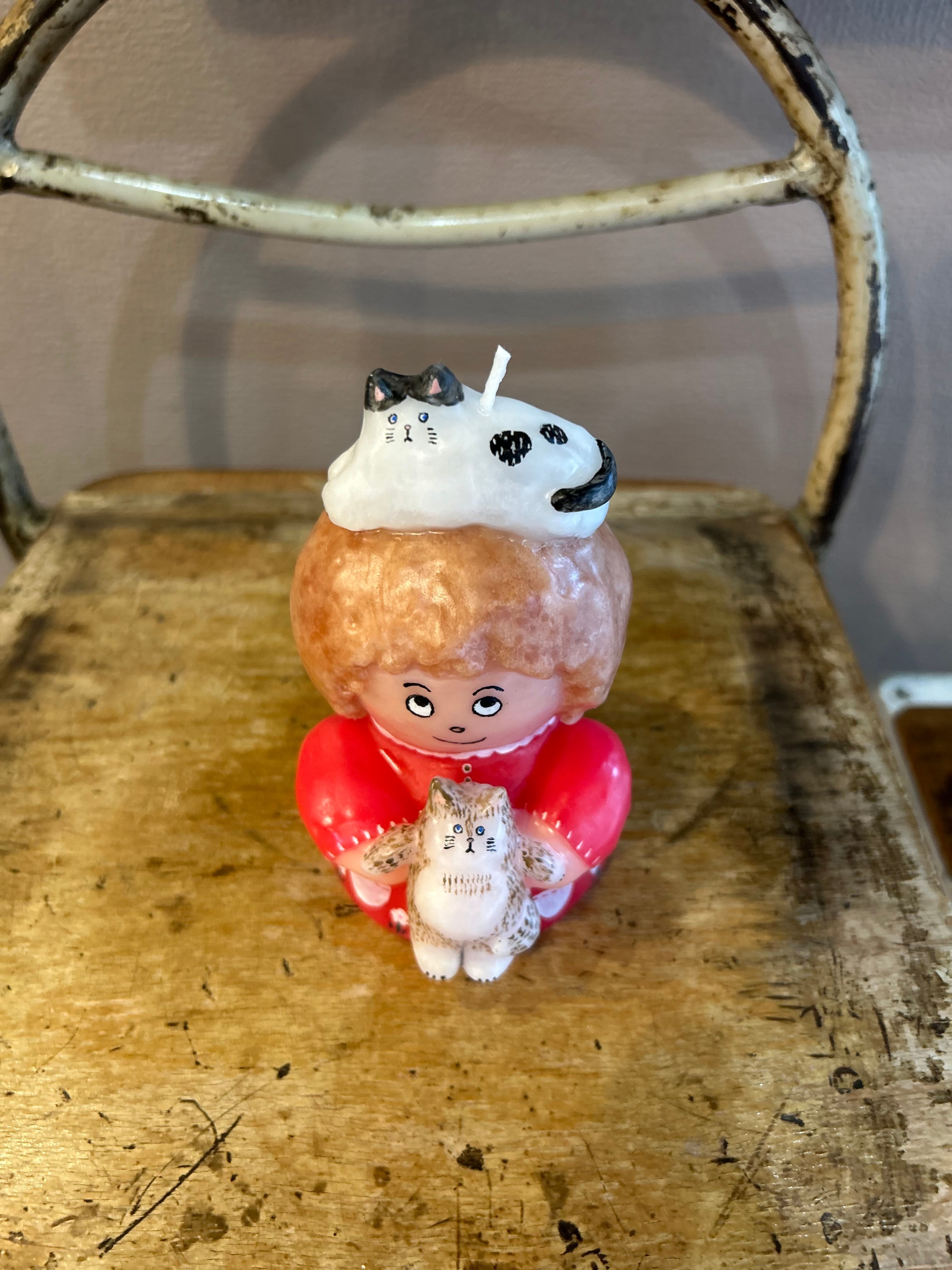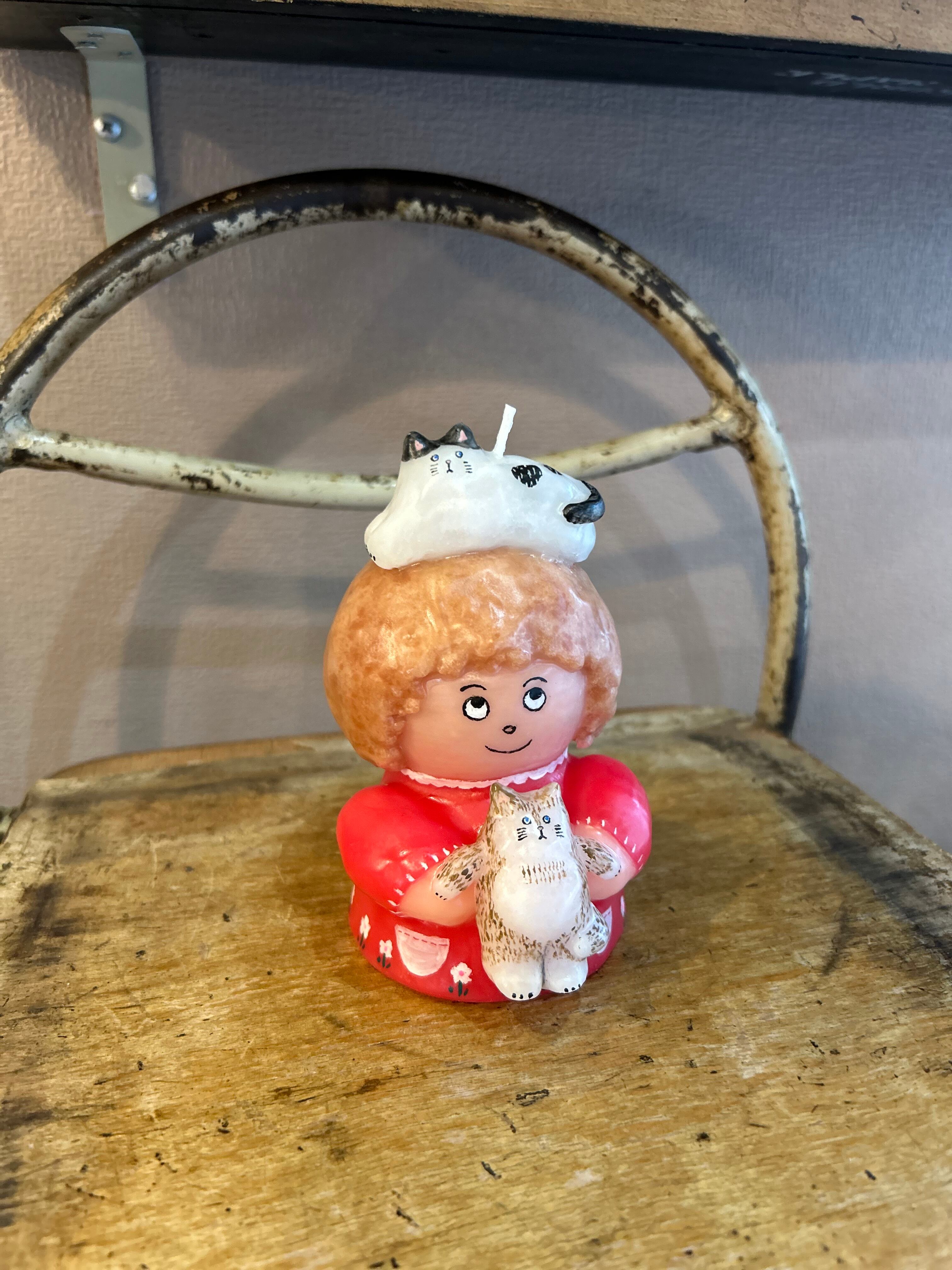 大好きな猫達と一緒にいる女の子のキャンドル。